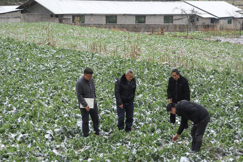 油菜是坪洞口村村民增收的支柱产业,全村50余户村民参与种植,种植面积达1000余亩。冻害发生后,当地驻村干部、村干部第一时间深入田间开展冻害排查与登记,同时积极对接县、镇农业部门,邀请农技人员赶赴田间“把脉问诊”,现场指导农户对油菜田厢沟、腰沟、围沟开展清沟排水作业,并重点指导做好凝冻天气过后菌核病、病毒病、霜霉病等病害的预防工作。